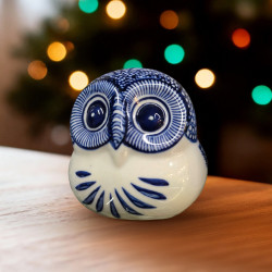 Handcrafted Blue Pottery Owl Decor - Small